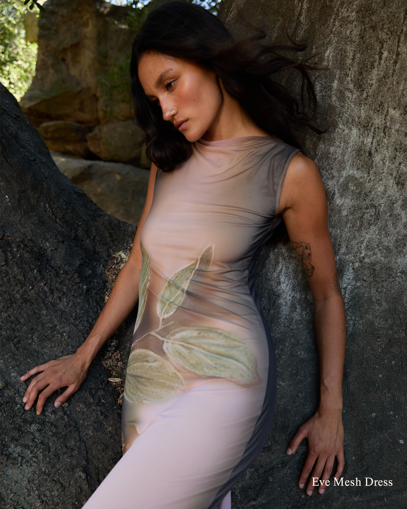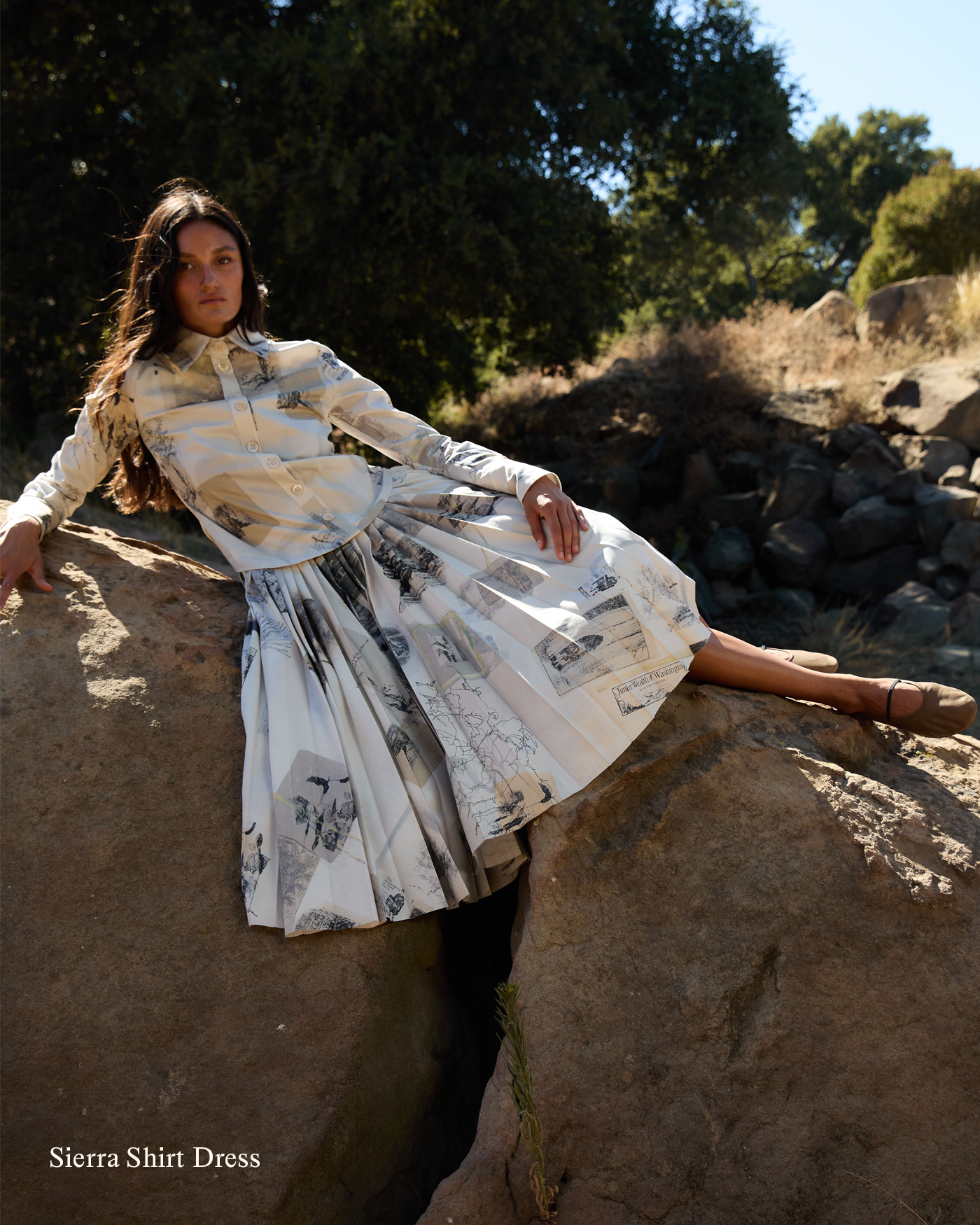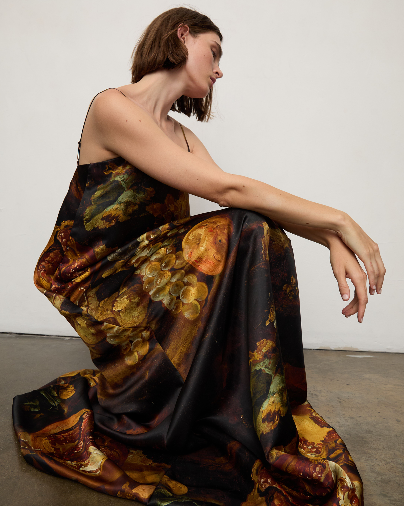 Through the use of prints, each piece is intended to be wearable art that sparks conversation. The imagery featured includes historical etchings and oil paintings, vintage photographs, and Falling Leaves, 2008 artwork by renowned British artist Jonathan Yeo. These prints dive into the history of logging, the devastating reality of deforestation, and the environmental impact of forest fires.
