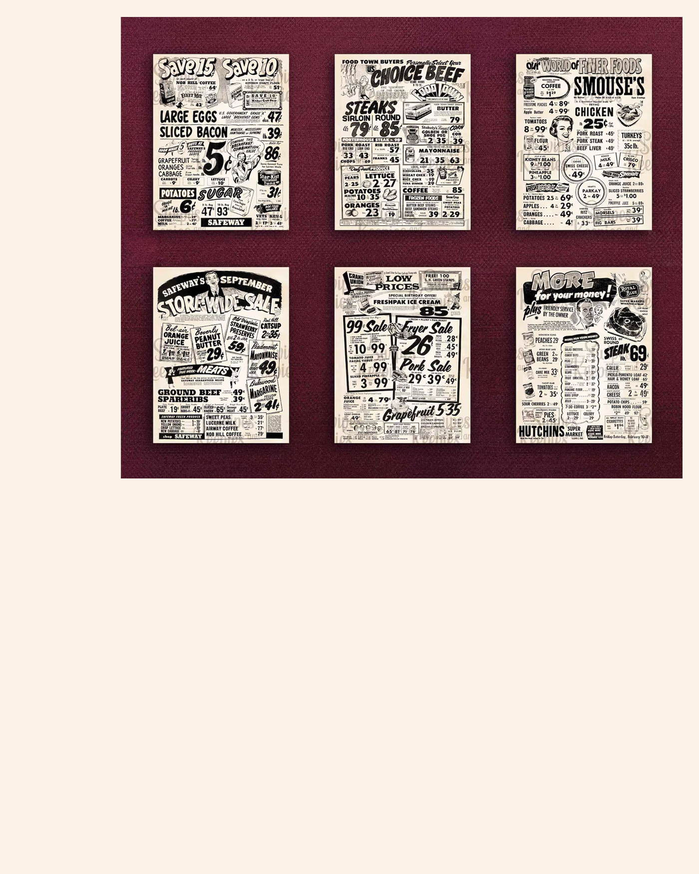 In typical Grover Rad fashion, this collection hones in on its message through the use of historical paintings referencing The Last Supper, vintage grocery store coupons, and a photo of the statue of Demeter, the Goddess of Harvest.
