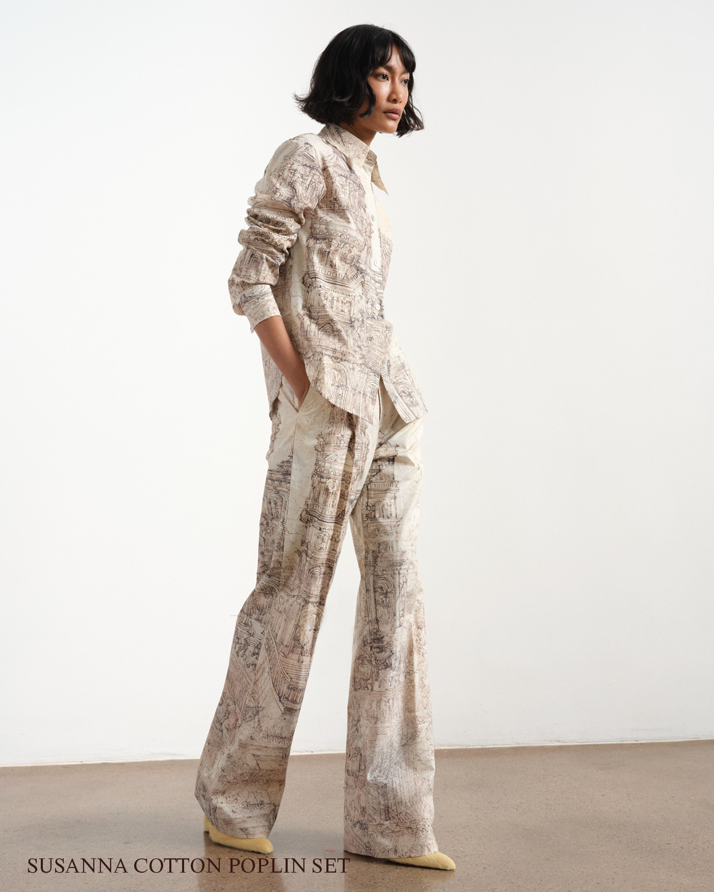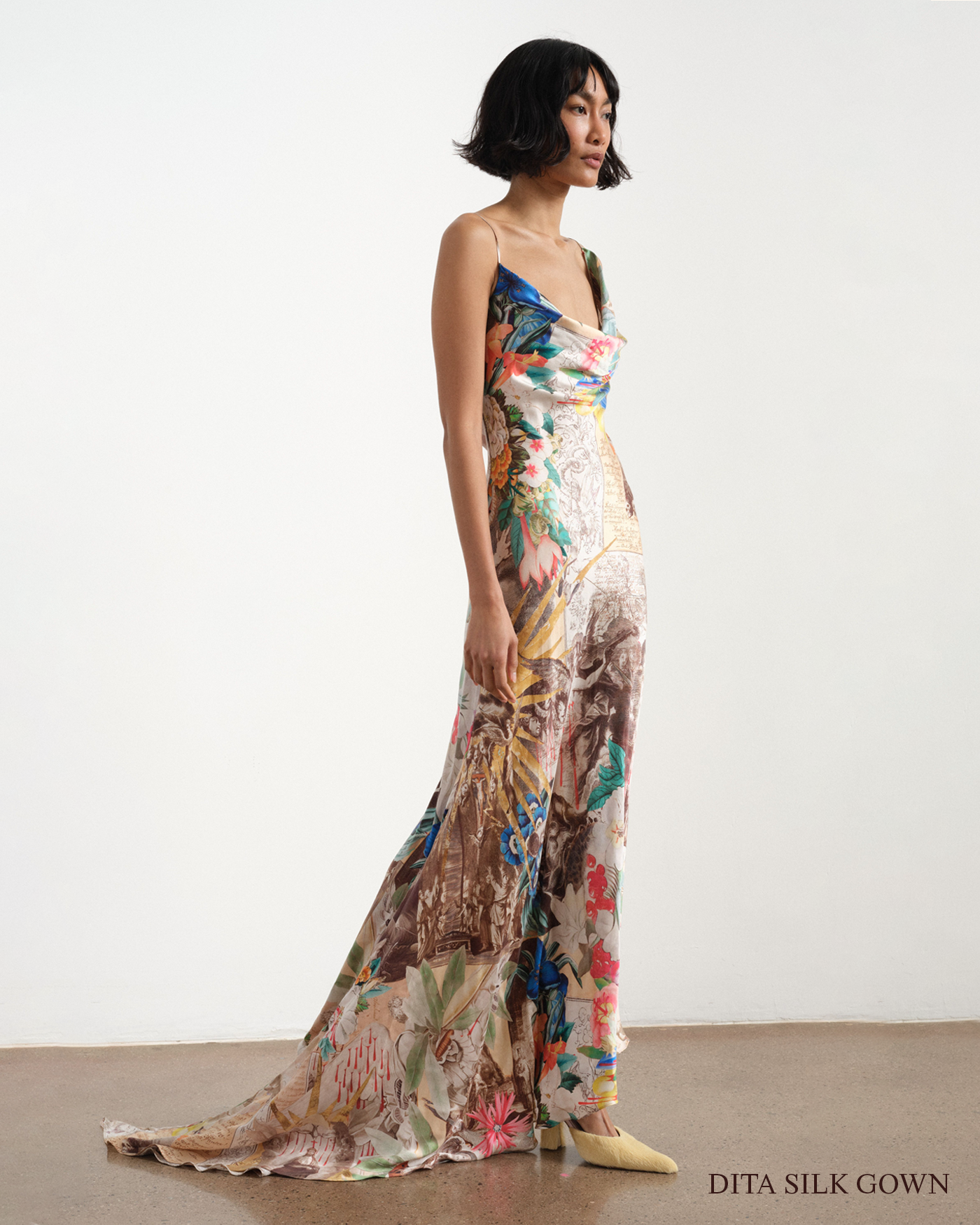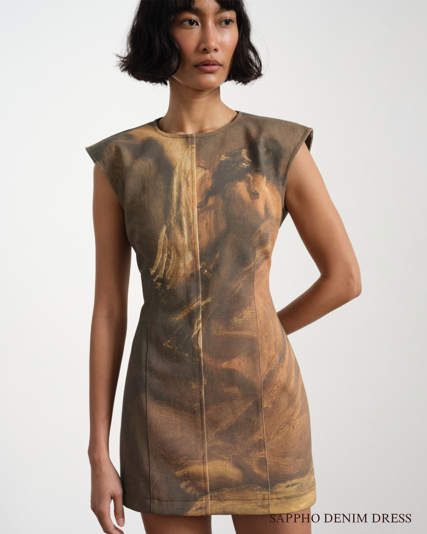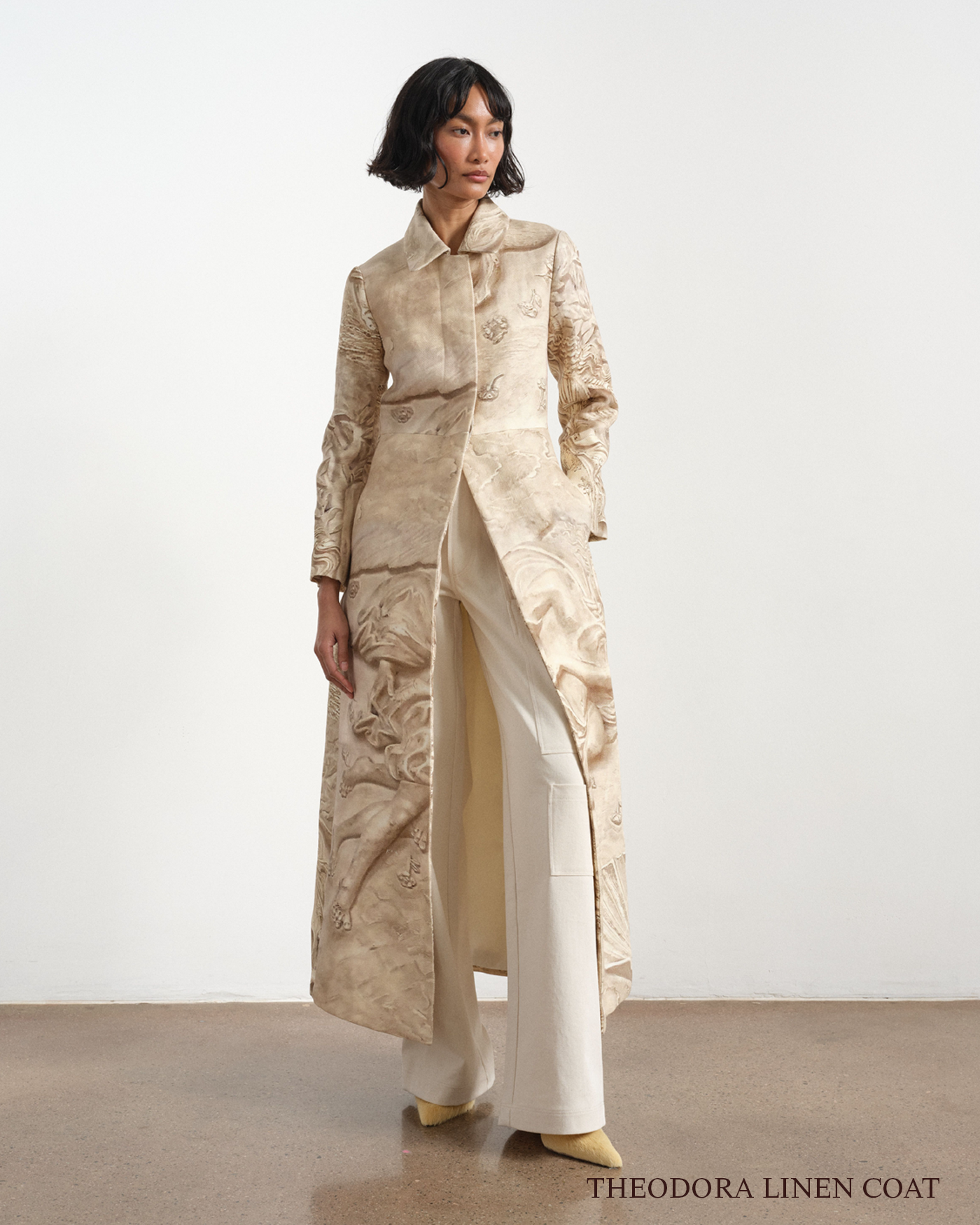 Illustrating the stories of these women through the use of intricate prints named after powerful heroines, each piece becomes a wearable statement of women’s history. Through timeless silhouettes and evocative imagery, this collection merges art and history to spark conversation. Historical etchings, oil paintings, and vintage illustrations portray the feminine form as a symbol of strength, sensuality, and defiance.