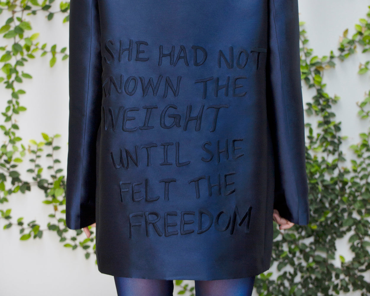 Over the past two years L.A. designer Lizzie Grover Rad has courted controversy with her collections, building her brand on sparking conversation around hot-button issues like reproductive rights (season one); the billionaire space race (season two); body modification and the pursuit of beauty (season three), and corporate greed (season four).